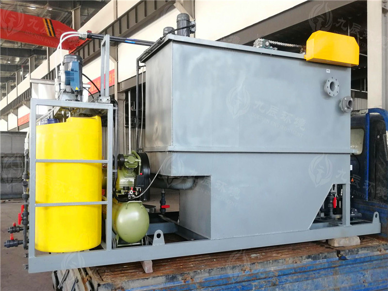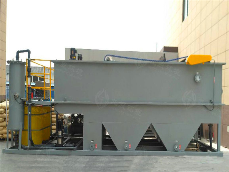 設(shè)備主體為長(zhǎng)方形鋼制結(jié)構(gòu)。主要部件由溶氣泵、空壓機(jī)、溶氣罐、長(zhǎng)方形箱體、氣浮系統(tǒng)、刮泥系統(tǒng)等組成。