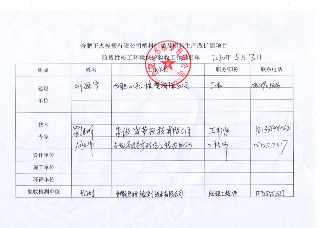合肥正杰模塑有限公司塑料制品及模具生產改擴建項目階段性竣工環(huán)境保護驗收報告公示