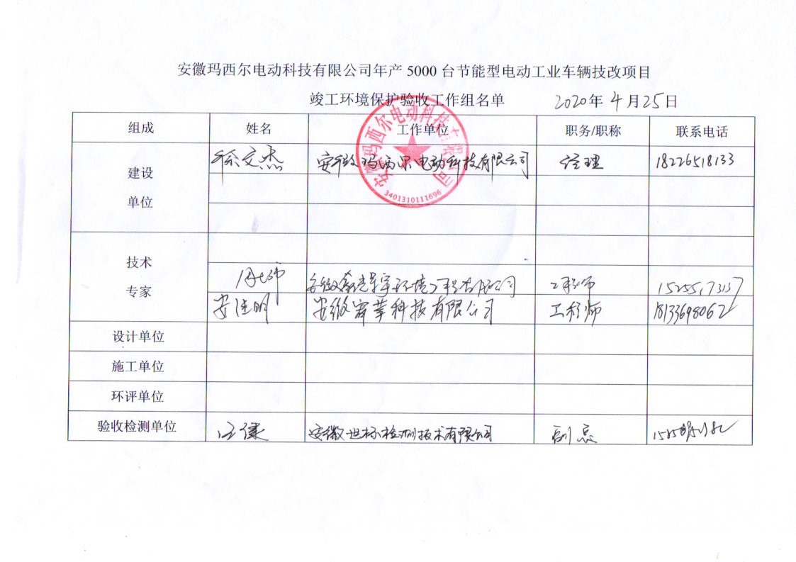 安徽瑪西爾電動科技有限公司年產5000臺節(jié)能型電動工業(yè)車輛技改項目竣工環(huán)境保護驗收報告公示