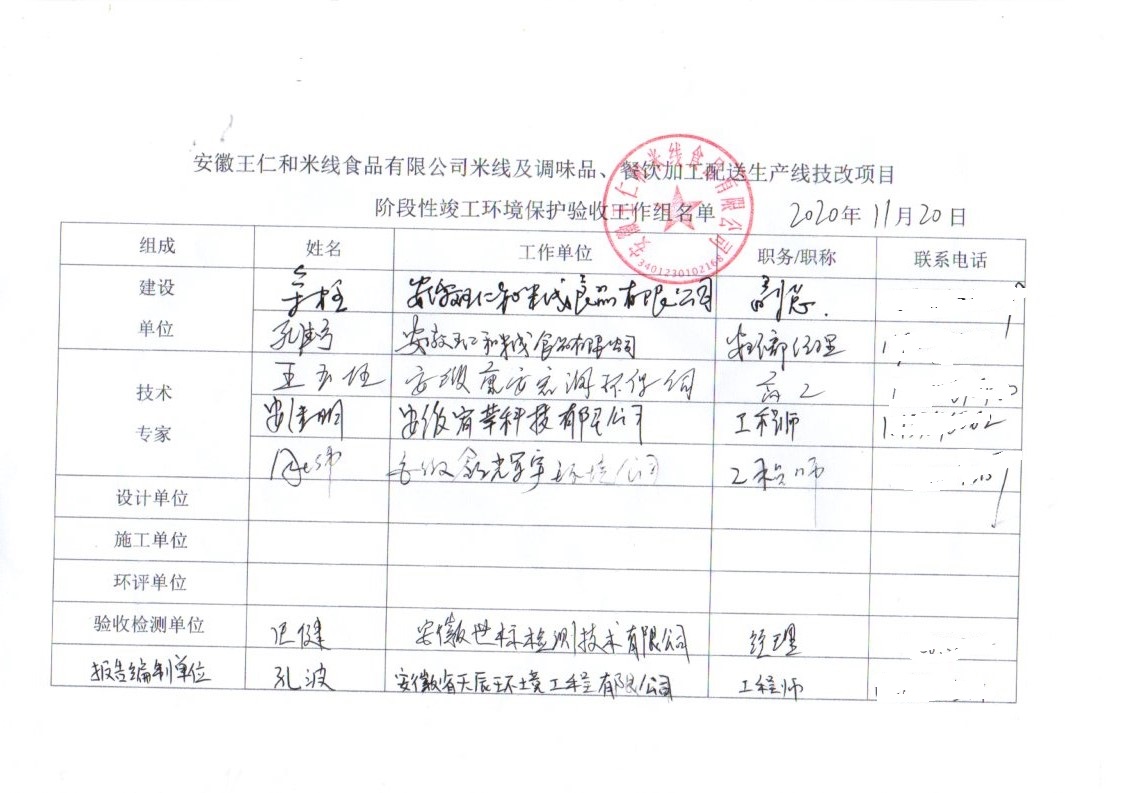 安徽王仁和米線食品有限公司米線及調(diào)味品、餐飲加工配送生產(chǎn)線技改項(xiàng)目階段性竣工環(huán)境保護(hù)驗(yàn)收意見.pdf