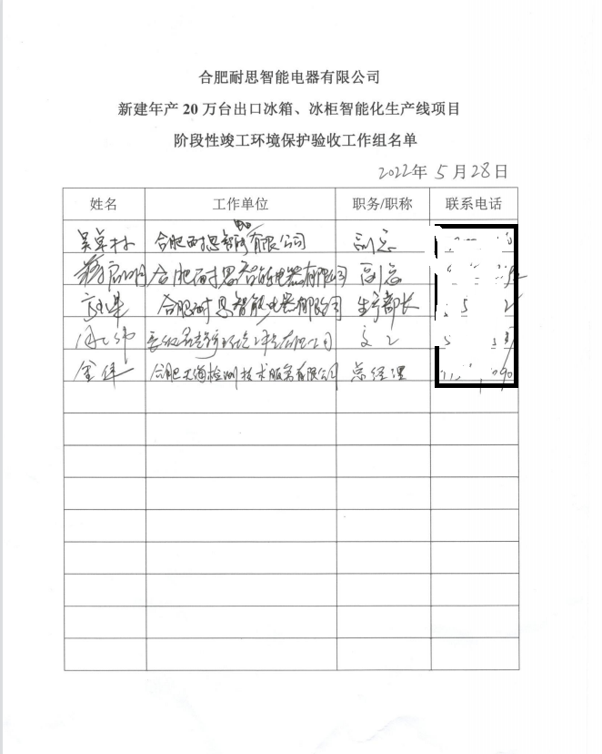 合肥耐思智能電器有限公司新建年產(chǎn)20萬臺(tái)出口冰箱、冰柜智能化生產(chǎn)線項(xiàng)目階段性竣工環(huán)境保護(hù)驗(yàn)收報(bào)告公示