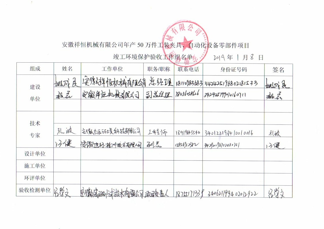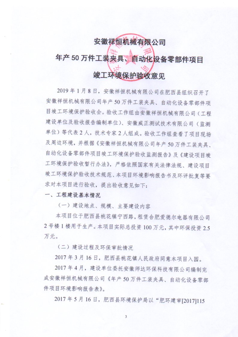 安徽祥恒機(jī)械有限公司年產(chǎn)50萬件工裝夾具、自動(dòng)化設(shè)備零部件項(xiàng)目竣工環(huán)境保護(hù)驗(yàn)收?qǐng)?bào)告公示