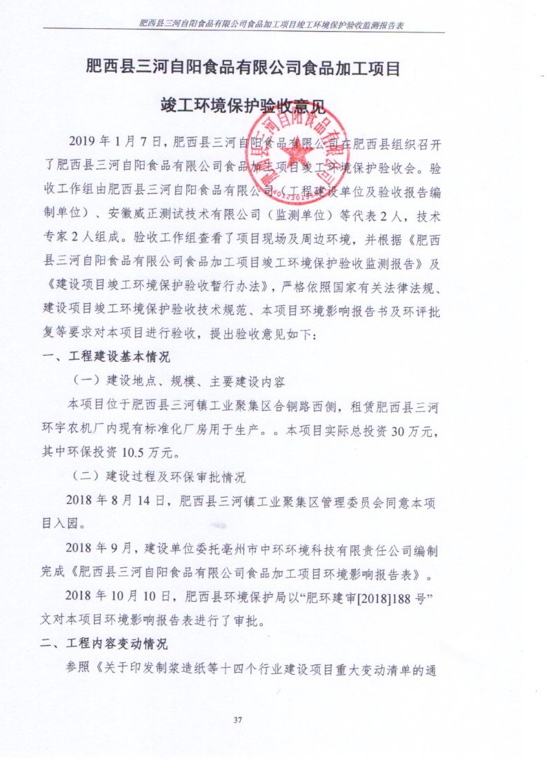 根據(jù)《國務院關于修改〈建設項目竣工環(huán)境保護管理條例〉的決定》(國務院令第682號),以及環(huán)保部《關于發(fā)布<建設項目竣工環(huán)境保護驗收暫行辦法>的公告》(國環(huán)規(guī)環(huán)評[2017]4號),現(xiàn)將肥西縣三河自陽食品有限公司食品加工項目竣工環(huán)境保護驗收內(nèi)容公式如下: