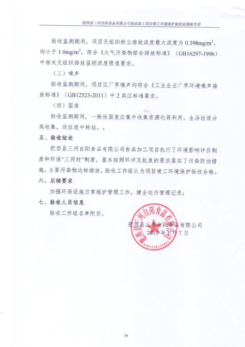 肥西縣三河自陽食品有限公司食品加工項目驗收監(jiān)測報告表.pdf