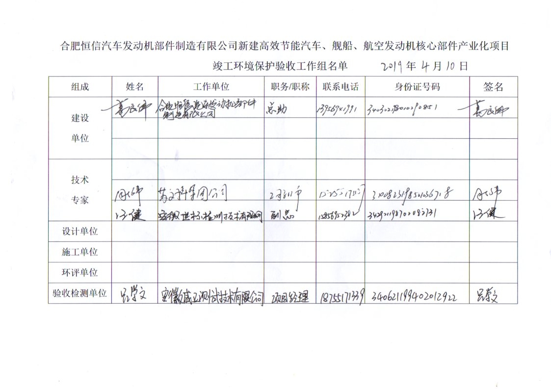 合肥恒信汽車發(fā)動(dòng)機(jī)部件制造有限公司新建高效節(jié)能汽車、艦船、航空發(fā)動(dòng)機(jī)核心部件產(chǎn)業(yè)化項(xiàng)目階段性竣工環(huán)境保護(hù)驗(yàn)收報(bào)告公示